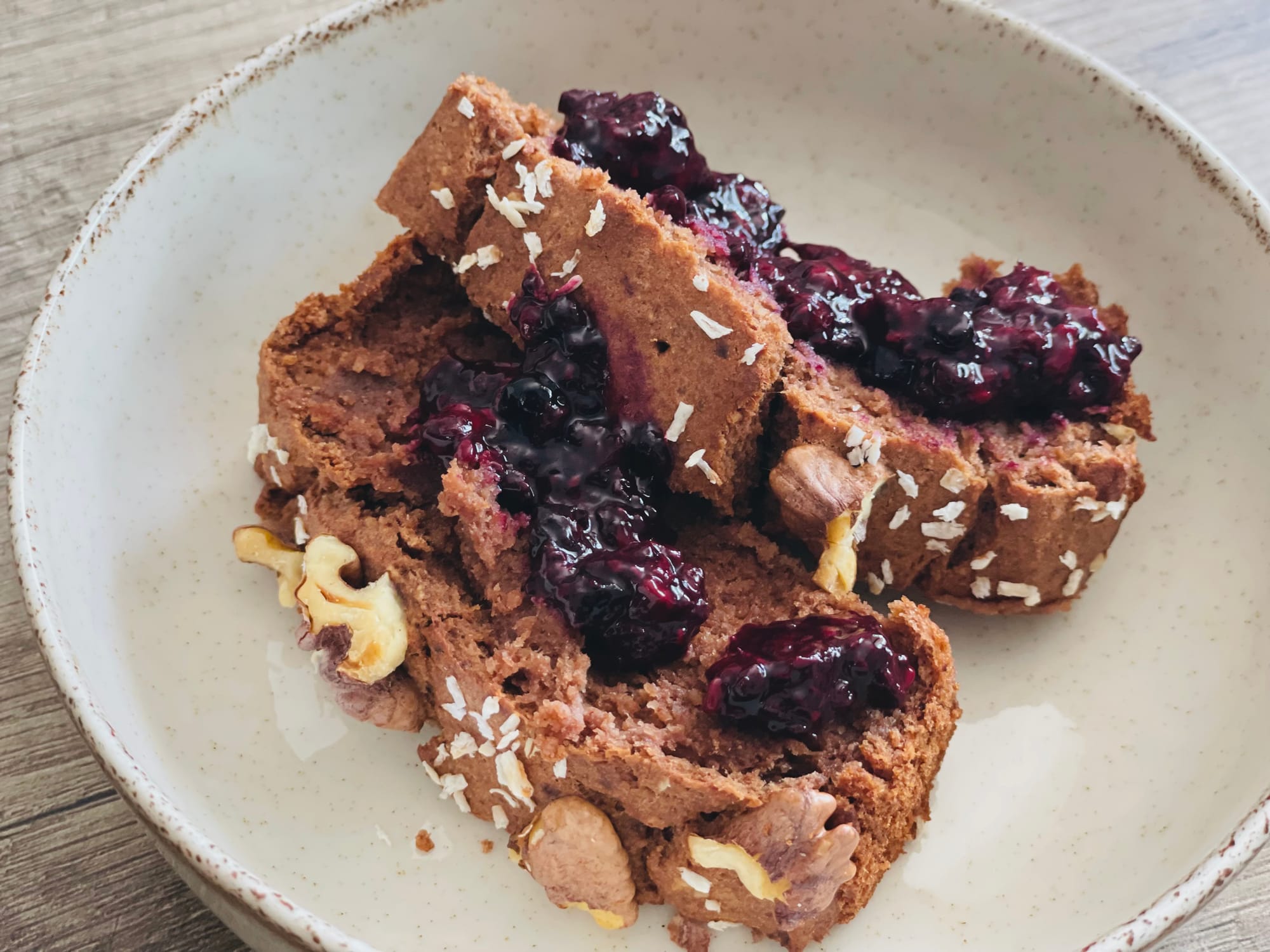 Combine all the ingredients and the result?! A moist, fluffy bread with just the right touch of sweetness; perfect as a snack. I love to enjoy it with a dollop of homemade berry chia jam. The contrast between the rich cacao and the tart berries is a finger-licking sensation!